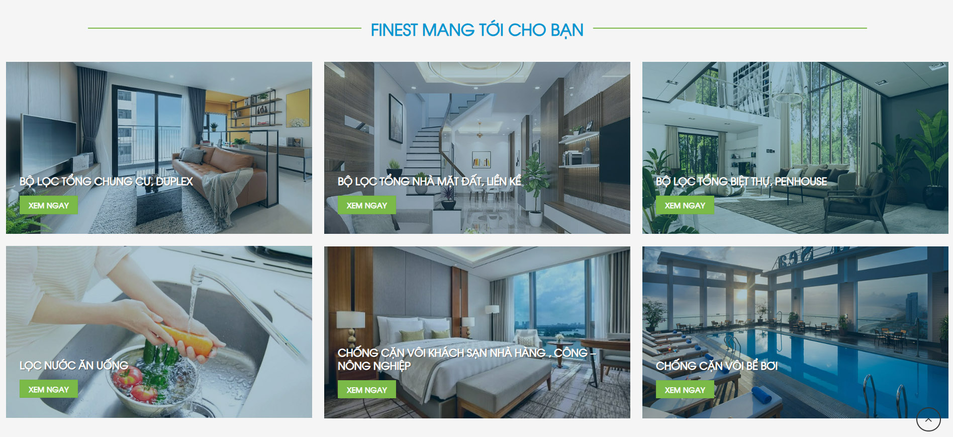 Để đem đến cho người sử dụng một trải nghiệm tốt nhất. Finest đã nghiên cứu và lựa chọn những sản phẩm, bộ sản phẩm phù hợp với từng nhu cầu rất rõ ràng. Như lọc tổng dành cho chung cư, cho nhà phố, hay cho biệt thự, penhouse… Đều là những sản phẩm riêng biệt, có lưu lượng lọc và công suất hoạt động khác nhau. Nhằm đảm bảo khả năng hoạt động tối ưu.